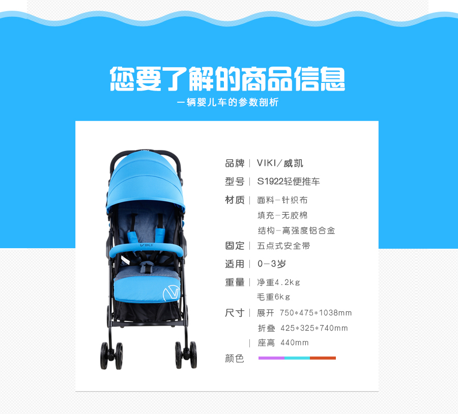 威凯Viki S1922推车(月光蓝)