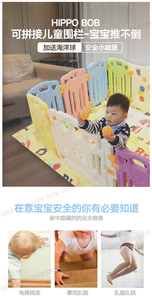 HIPPO BOB 儿童可拼接围栏(10+2片)(加送50个海洋球)